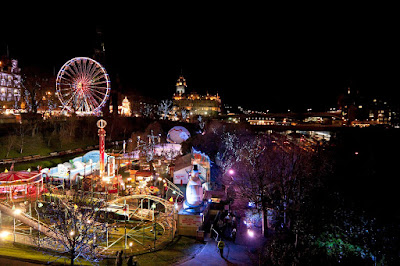St Gile's was our first 'port of call' . We saw parishers setting up a big Christmas tree but did not stay to witness their success in erecting it. After depositing our luggage back inTravelodge, we walked towards Canongate. By now, it was sundown. From the fare grounds of the Edinburgh castle we saw the new town across the old town bustling with activities and lights from the night market. Beyond in the dark, a string of street lights dotted the outline of the bay beyond.